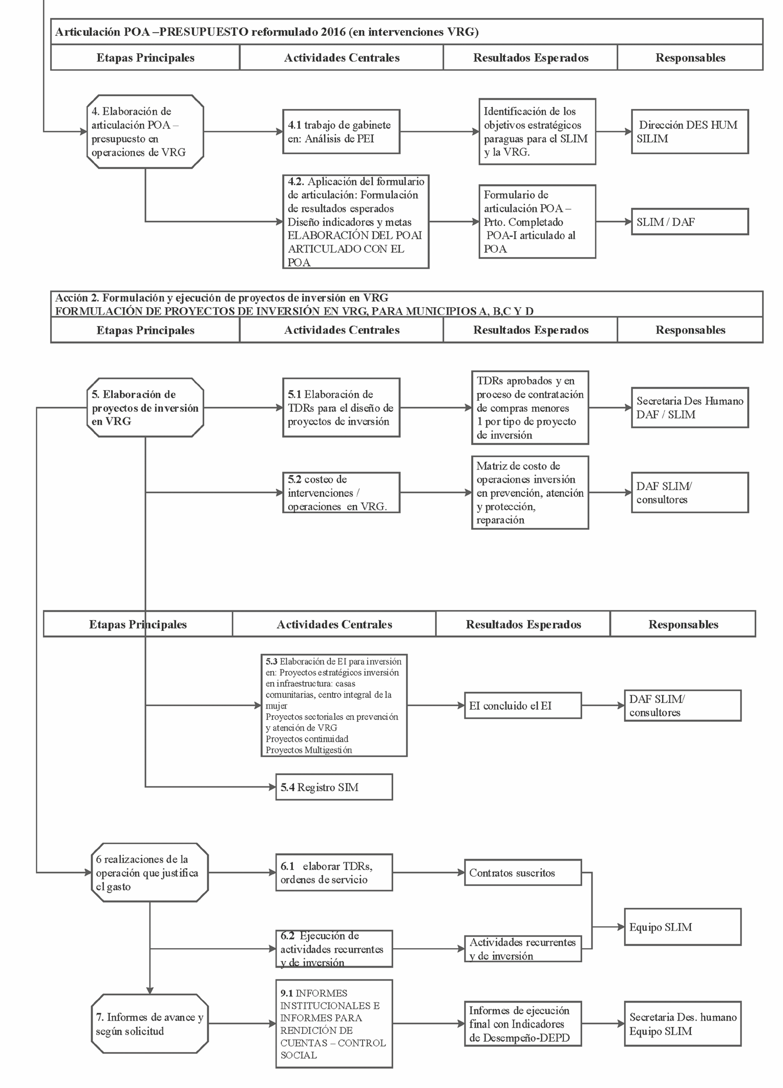 • Plan nacional de Prevención y Erradicación de la Violencia contra la Mujer (1994 – 1995), propuesto y conducido por la subsecretaría de asuntos de Género16 con el objetivo de erradicar la violencia desde dos perspectivas: respecto a los derechos humanos y respecto a alcanzar un desarrollo con equidad. su principal logro ha sido la formulación de la Ley 1674 contra la violencia en la familia y doméstica (1995) y, su reglamentación a través del Decreto Supremo 25087. En este proceso se crean las Brigadas de Protección a la Familia y a nivel municipal los Servicios Legales Integrales con recursos de la coparticipación tributaria.